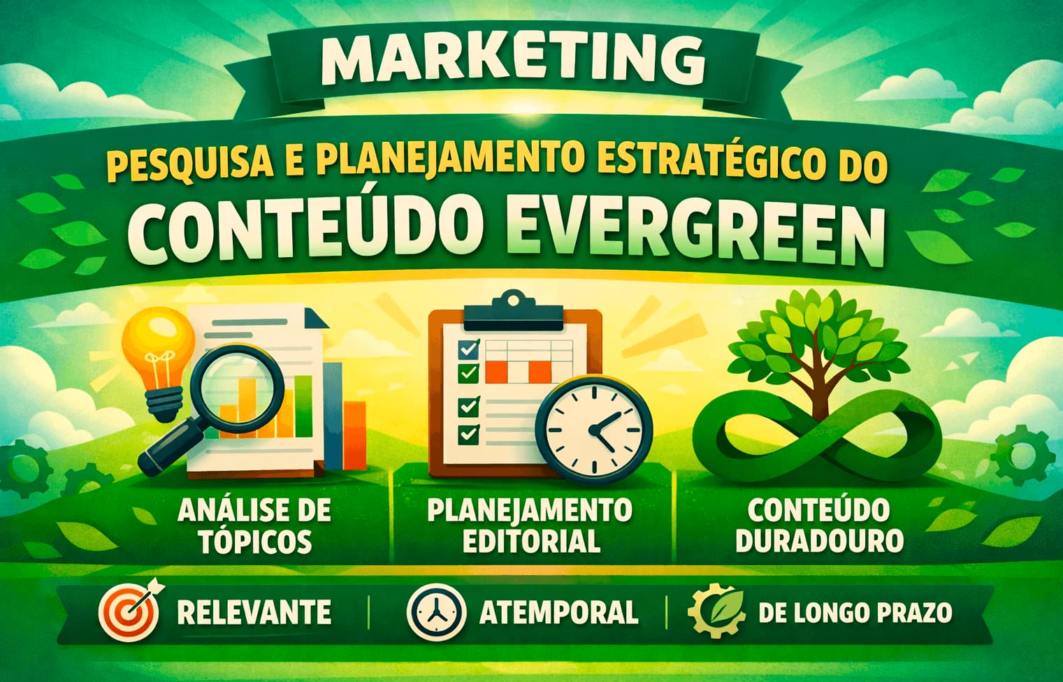 Enquanto muitos criam para o agora, quem mantém evergreen constrói vantagem no tempo. Cada atualização: