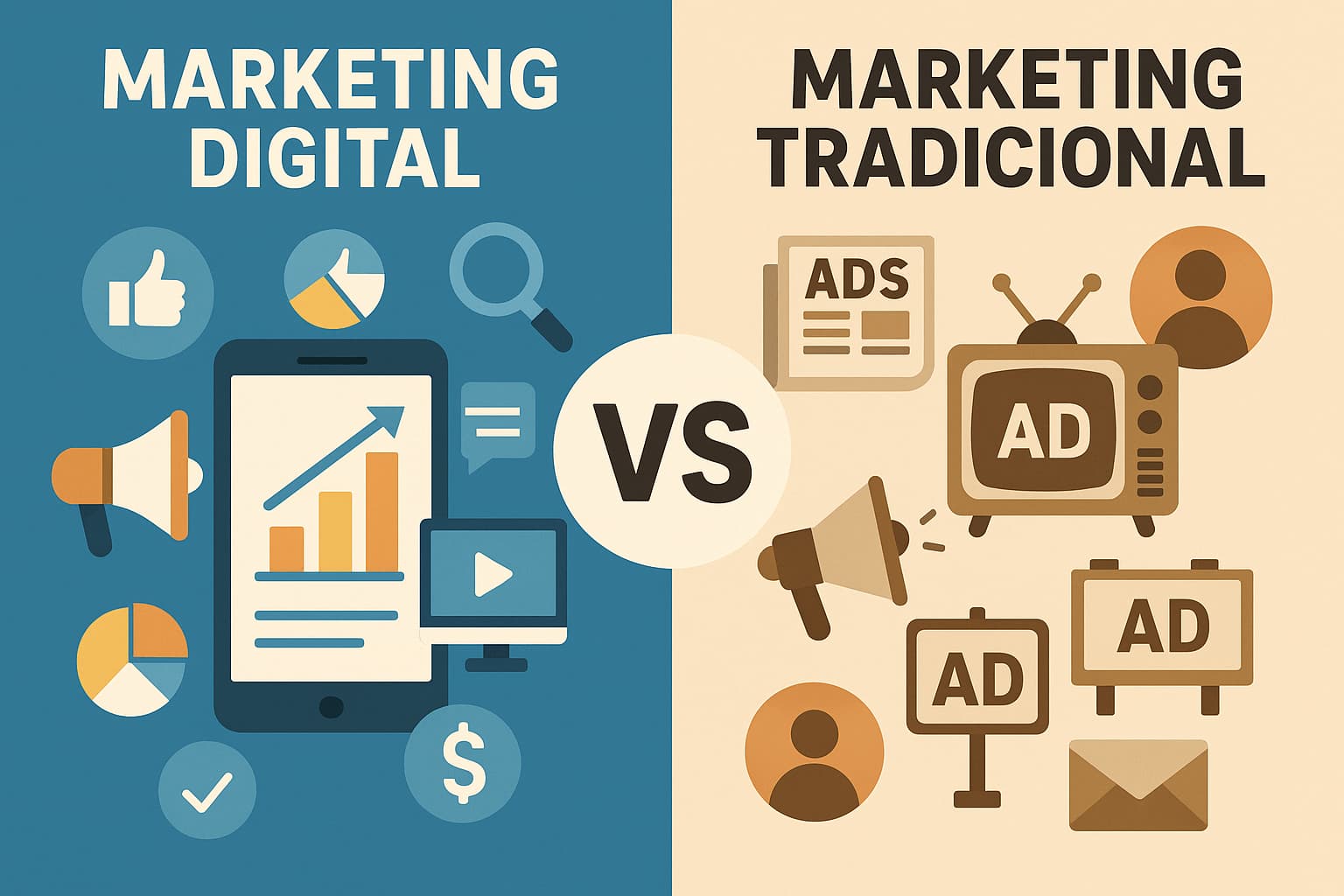 O marketing tradicional ainda é útil para alcance e branding, enquanto o digital oferece segmentação, mensuração e engajamento.