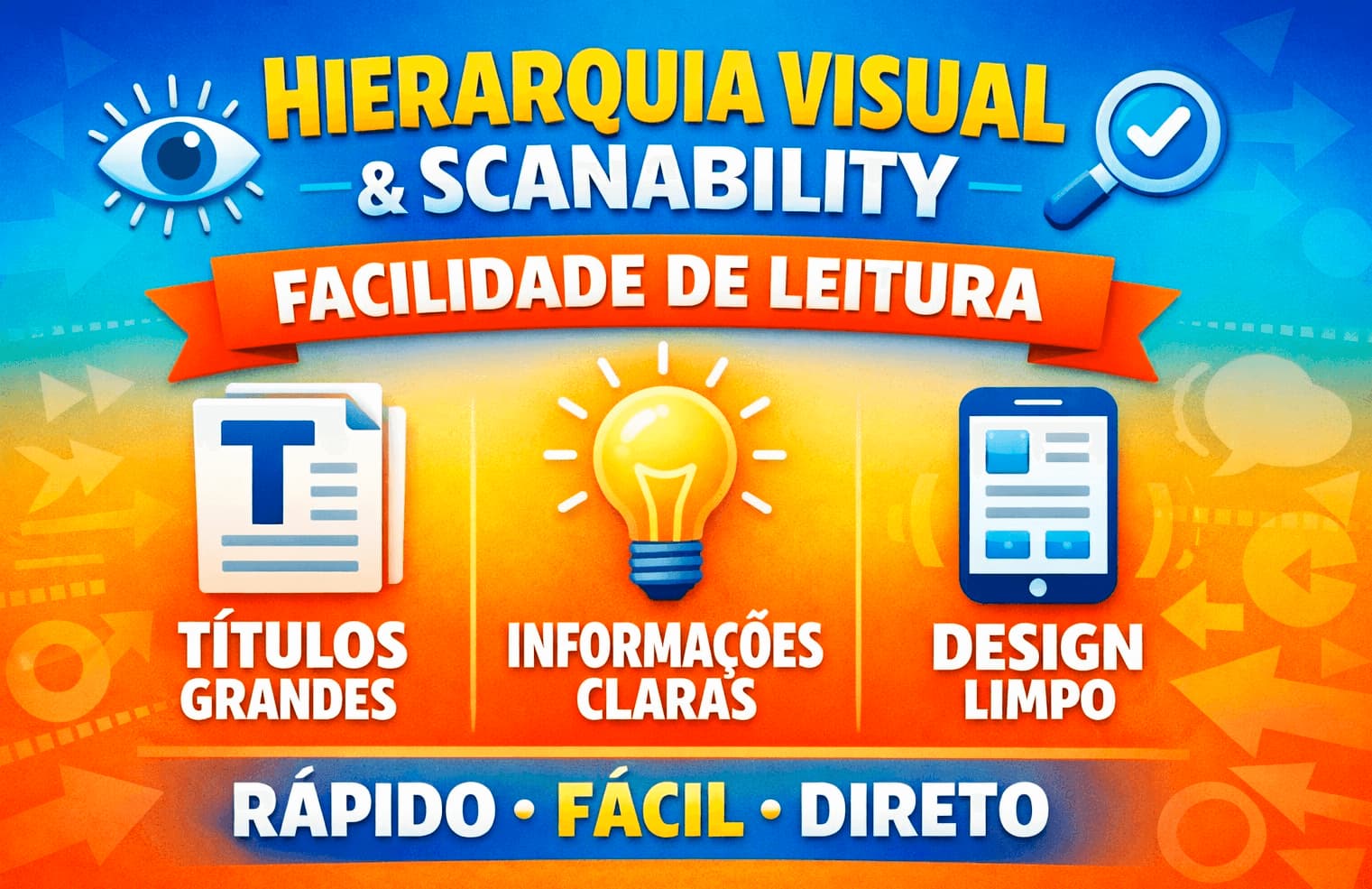 No marketing digital, hierarquia visual e scanability são elementos cruciais para que o usuário absorva informações rapidamente e realize ações desejadas. Usuários online não leem palavra por palavra; eles “escaneiam” a página, buscando títulos, subtítulos, listas e elementos destacados que orientem sua atenção. Um design bem estruturado facilita a leitura, melhora a experiência e aumenta conversões.